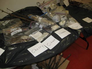 The world of grafting enthusiasts is diverse and energetic. As part of the UCLA Plant Propagation class, taught by David King, we took a field trip on Feb. 6th to the Rare Fruit Growers monthly meeting. We were instructed to bring scion from our fruit trees, and I took some Apricot and Santa Rosa Plum scion. The scion, wrapped in moist paper towels in plastic bags and carefully labeled, was lined up alphabetically on tables along the front of the room.